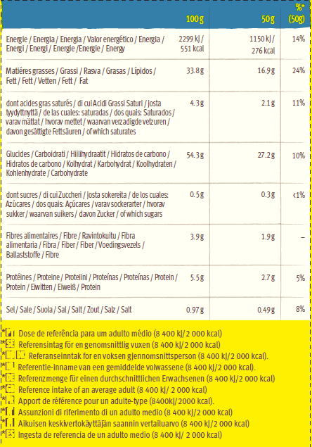 Tous les produits Old El Paso™ peuvent être modifiés à tout moment. Nous recommandons donc de toujours vérifier la liste des ingrédients sur les emballages de nos produits avant de les acheter, afin d’en déterminer le contenu précis.Valeurs nutritionnelles